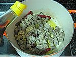 依次加入牛肉粉与盐(可以不一次加够,后面再加,以免过咸),翻炒均匀。