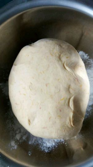 将面团分别重新揉好(如果面团粘手的话,放点干面粉哦!),充分排气,揉成光滑面团!