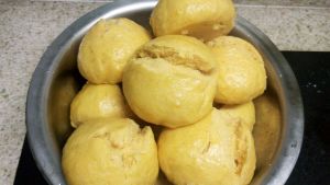 发酵好后,继续揉面团10分钟左右进行排气,(这样蒸出的馒头会更蓬松软活)然后将面团揉成自己想要的大小和形状,静至十五分钟。