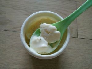 把酸奶放进淡奶油混合物里,用手持搅拌棒搅拌均匀