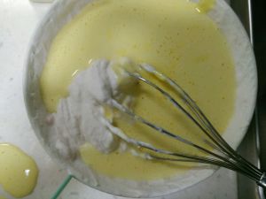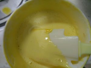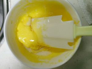 轻轻倒入搅拌好的蛋黄,搅拌均匀