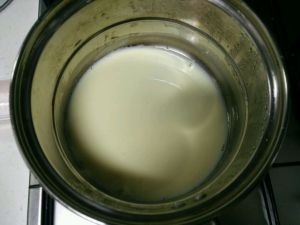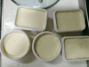 加入炼乳,我用冰块盒隔开放的,也可以用汤圆盒什么的,反正别倒下就行,放入冰箱冷冻3小时以上