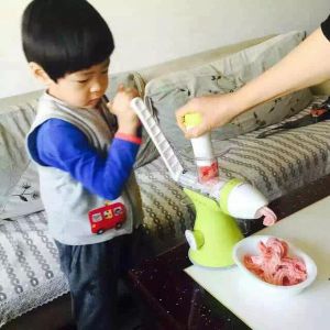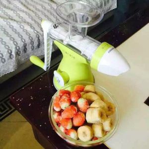 将草莓和香蕉加入果语原汁机用冰淇淋头摇出来