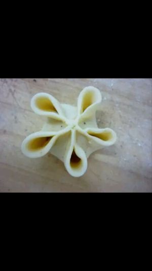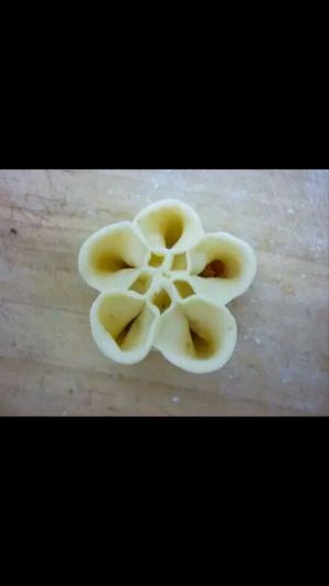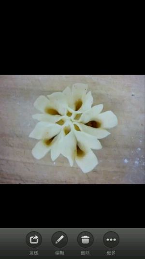 把五瓣相互触碰到的边缘捏合,注意还是要留下孔,如图