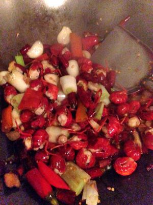 2.热锅凉油,放入蒜末指天椒翻炒 炒出香味后放入炸好的小龙虾进行翻炒 倒入啤酒 大火开煮开后 放入辣椒油 花椒油 煮至心情好后调味 盐 鸡粉 味精 耗油 调好味道之后试一下味道如何 在选择要不要放盐 最后才放五香粉 盖上锅盖 小火慢煮五分钟放入青瓜 最后大火收汁