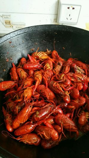 香料炒好之后,把小龙虾倒入锅里一起翻炒,炒至小龙虾发红的时候,倒入啤酒淹没小龙虾即可,焖开锅,然后加入糖,盐,鸡精,焖10—15分钟左右收汁