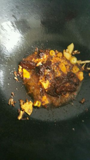 首先放油250克,油加热后加入姜干辣椒花椒,豆瓣酱一起爆香