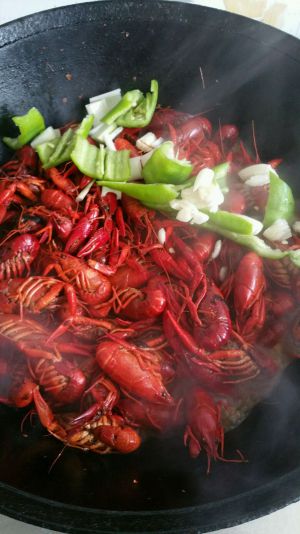 锅里放油,放准备好的调料,炒香放小龙虾一起炒,