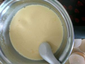 蛋液过细筛,除去泡沫。到这一步蛋液就做好了。