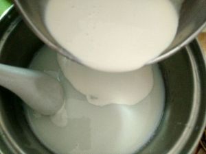 牛奶加糖小火煮至糖熔化要边搅拌哦