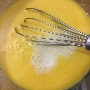 蛋挞液:取3个蛋黄,将牛奶、淡奶油、炼乳倒入,搅拌均匀
