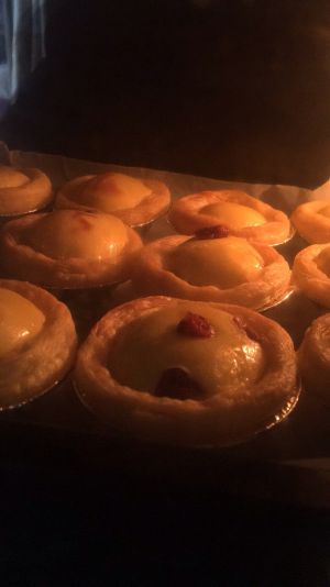 提前烤箱预热到200度,上下火!取12个蛋挞皮每个蛋挞皮倒入八分满的蛋挞液,多了在烤制时会满出来哦!