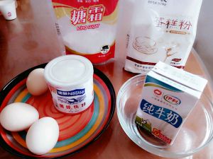 将准备好的牛奶、面粉、蛋黄、白糖、炼乳混合搅拌均匀后