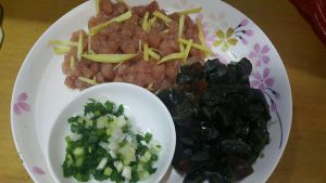 将瘦肉洗净切丝,大小随意,加少许盐、料酒抓匀,再加一小勺植物油和少许姜丝抓匀,浆30min以上。将米淘洗干净,放在碗中加没过米的水和一勺香油拌匀,静置20min以上。