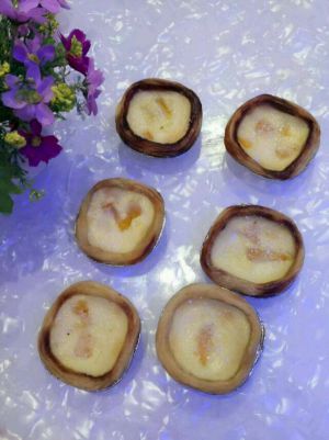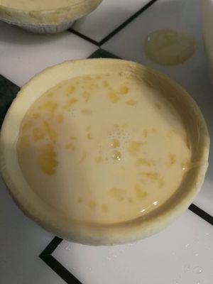 蛋挞皮事先在25度的室温下解冻20分钟,然后将蛋挞水注入蛋挞皮内,注入2/3即可,不能装得太满。