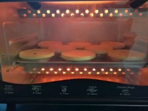 放入烤箱,我的这个是中奖得来的,最小的烤箱,180℃,25分钟。反正外面看到里面情况,表面稍微变焦就可以取出