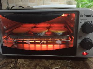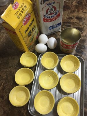 烤箱预热后,放入蛋挞,上下火180度,25分钟左右即可。