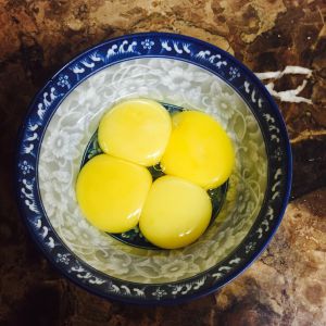 将鸡蛋蛋清与蛋黄分离,只需要蛋黄哦!(蛋清不要浪费哦!可留下做意大利pasta哦后面还会有小编哦)
