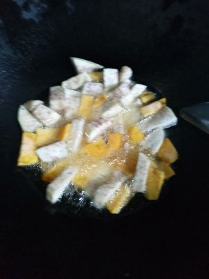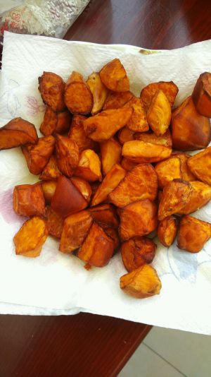 锅中加少许油,加水将冰糖熬化,最后变成焦糖色为好,将炸好的地瓜放入炒好的糖里翻炒均匀即可。