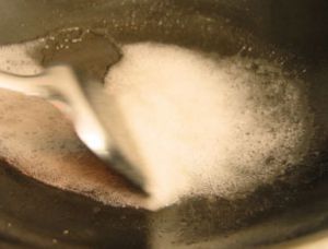 待油糖成浆糊状,立即关火