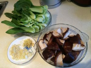 准备食材,油菜洗净,香菇洗净切块,葱姜蒜