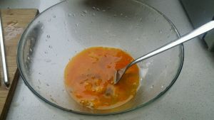 鸡蛋,加小半勺生粉、小半碗水、小半勺酱油、小半勺花生油、适量盐打散