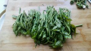 香椿洗净,取最嫩的叶子和枝干,然后在案板上剁碎,越细碎越好