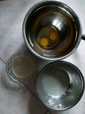 准备材料:将蛋挞皮解冻备用,取出蛋黄,过筛低筋面粉。