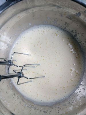将辅料中所有的材料混合均匀成为蛋挞液备用。