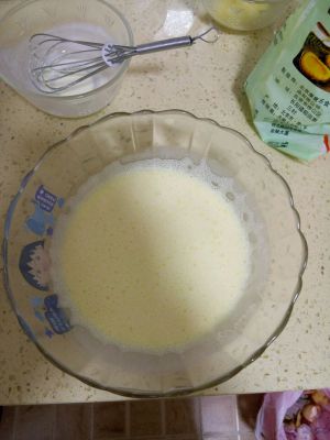 鸡蛋打散(不用打发哟),倒入晾凉的牛奶液里拌匀,过筛3次就成了香甜的挞水了。
