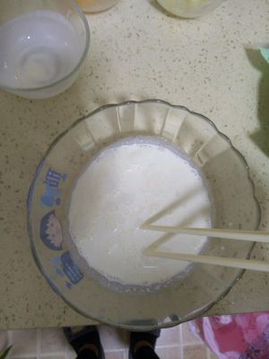 把砂糖牛奶淡奶油混合在一起搅拌使砂糖融化