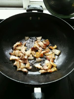 锅洗净擦干,适量油下锅,倒入五花肉、料酒,大火翻炒。