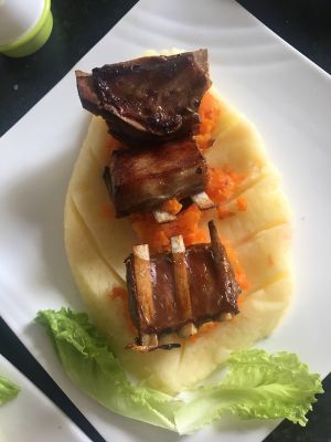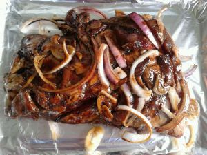 锡纸包好整个羊排,烤箱200度,烤1个小时。然后打开锡纸的上面,羊排均匀涂蜂蜜,不包锡纸再烤15分钟。