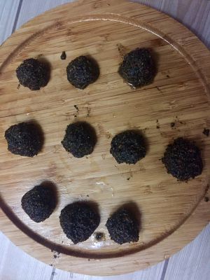 黑芝麻粉加红糖,桂花,花生酱,适量水搅拌成糊状,搓成丸子,做馅