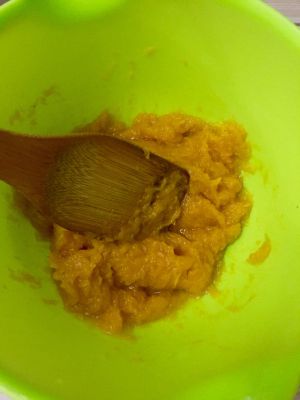 第一步,南瓜隔水煮30分钟,捣成泥状
