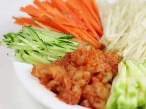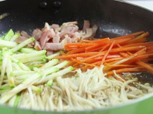 蔬菜切丝备用,可以替换成自己喜欢的蔬菜~