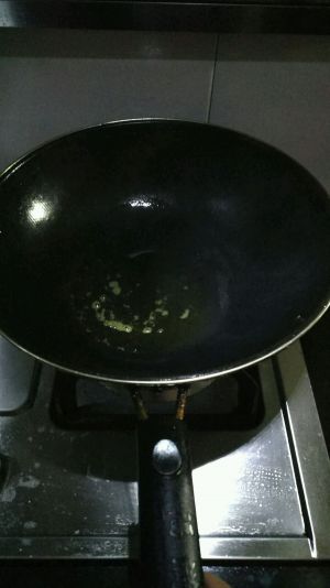 锅中加植物油适量,油热到60-70度左右放入葱花少许再把切好的配菜放入锅中煸炒。