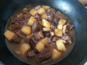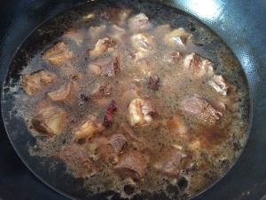 筷子比较容易可以插入肉块时,放入炒过的土豆,继续煮至土豆软糯。