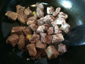 油锅内继续放入姜片、八角、桂皮,煸炒几下。