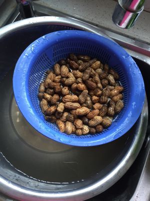 洗干净后,用手将花生皮捏开个小口,以便煮时入味。