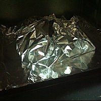 用一张锡纸垫在烤盘上,另一张将羊排包好,烤箱200度上下火,烤20分钟,用锡纸包的目的是为了防止羊肉水分流失口感发柴