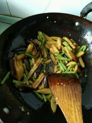 再倒入适量油 将茄子炸至微黄 出油即可捞出