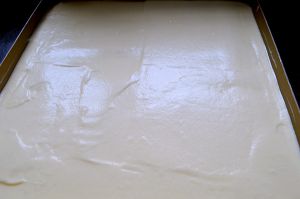 把蛋糕糊倒入烤盘中。