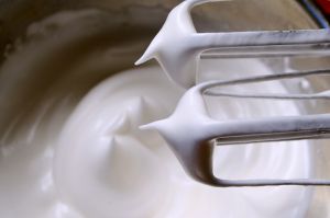 打发好的蛋白,看起来是蛮坚挺的状态