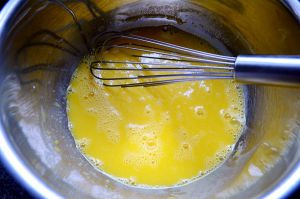 混合好后的蛋黄液,一定要充分混合。