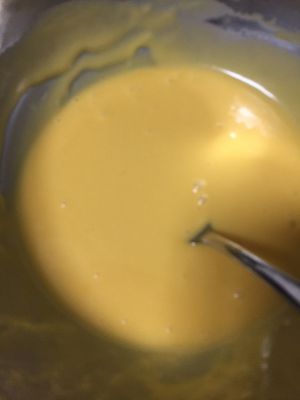 每一次加入蛋黄都要搅拌均匀,最后的均匀蛋黄糊静置15min
