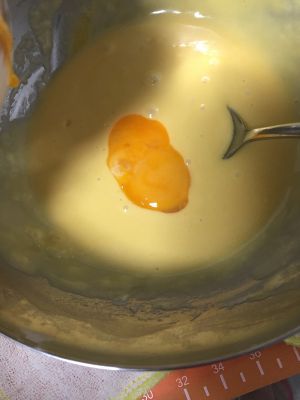 分次加入蛋黄和全蛋