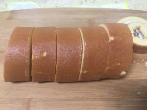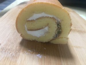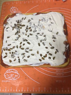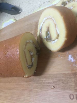 烤好的蛋糕卷冷却之后,卷入奶油即可