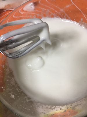 继续打蛋白到蛋白细腻加入最后一次白糖(如图所示)