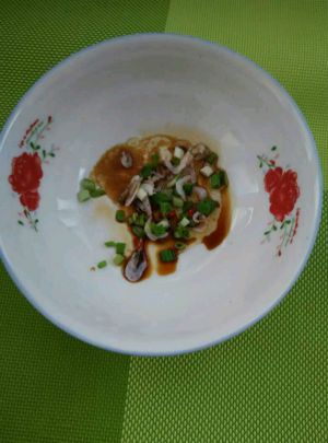 肉和虾放到一个大碗中,葱切末,放入碗中,然后加入生抽,盐,白胡椒粉,花椒粉,香油,最后把玉米油烧热浇葱花和其他调料上,会发出滋滋的声音,激出香味。我没放味精,原因就是首先虾已经很鲜美了,其次妈妈总说少吃味精,不好,,,